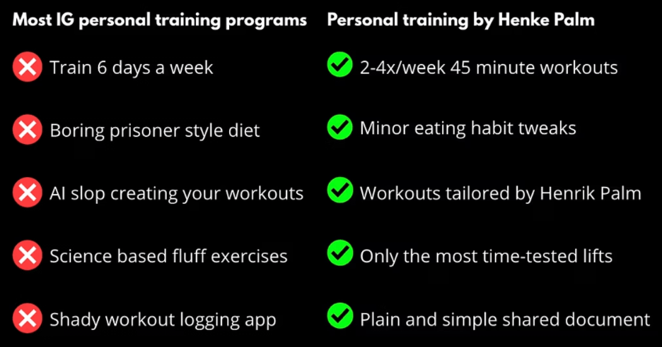 Here, I differ. We use tools you already have on your phone, giving you access to workout logs and communication with me almost instantly. This is the exact system my community and I have successfully used for years, and the results speak for themselves.
